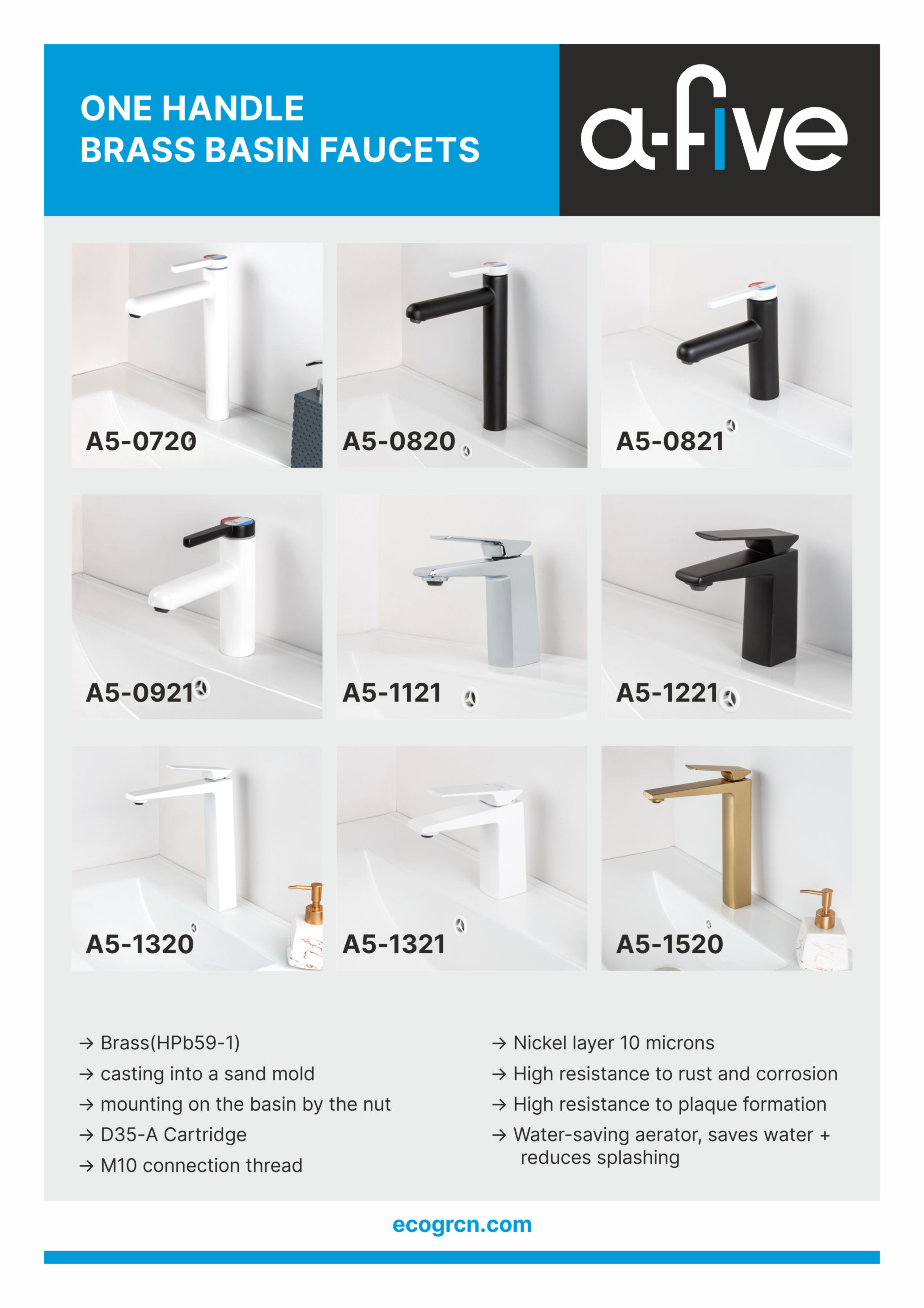 a-five faucets combine the aesthetics of modern style, ease of use, reliability - only high quality brass. Choosing the right faucet is equivalent to choosing a truly comfortable lifestyle. The functional features of this faucet will allow you to open, close and control the flow of water every day with ease and comfort. Not only the appearance of our faucets can attract you, but also their high quality - Service life of the body at least 15 years