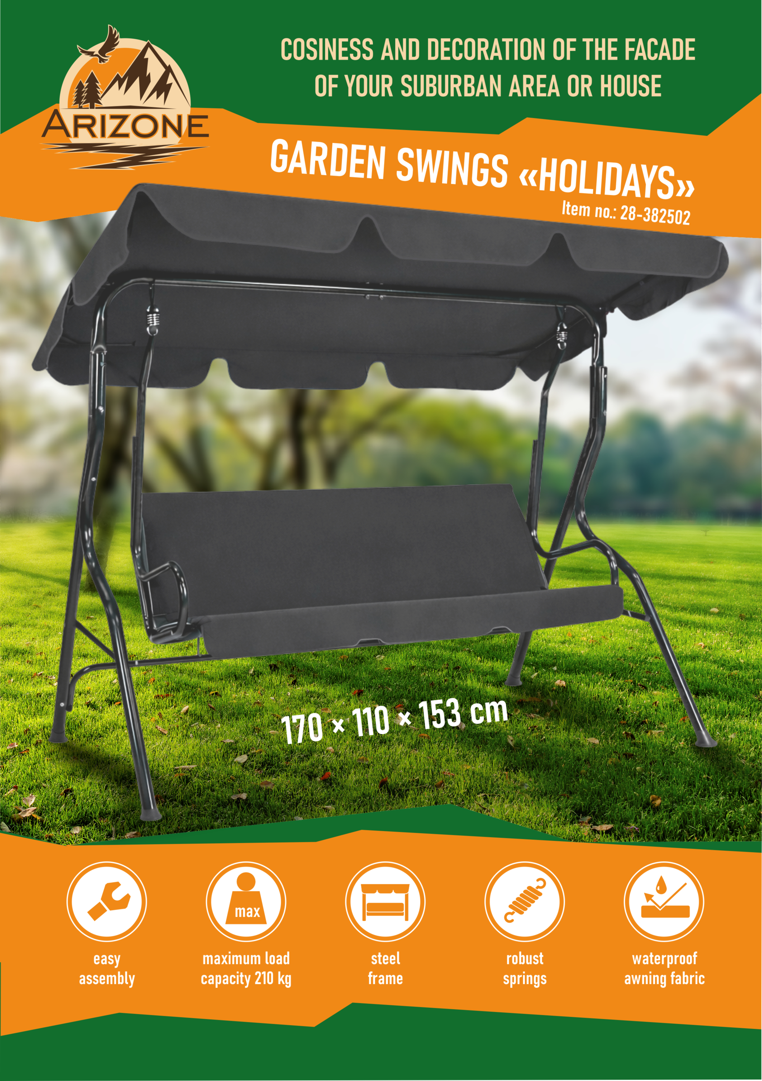 Garden swings, Holidays, ARIZONE (Size: 170x110x153 cm. Maximum load: 210 kg (3 people).)